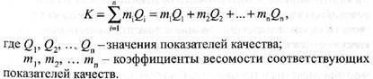 Комплексный показатель качества, как правило, выражают в виде суммы произведений значений показателей качества на величину коэффициента их весомости: