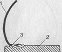 | Рис. 5.15. Схема выворотного метода крепления низа обуви: I — заготовка верха, 2 — подошва (с порезкой), 3 - ниточный шов |