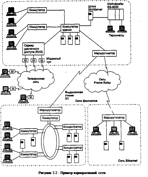 Непременным атрибутом такой сложной и крупномасштабной сети является высокая степень гетерогенности — нельзя удовлетворить потребности тысяч пользователей с помощью однотипных программных и аппаратных средств. В корпоративной сети обязательно будут использоваться различные типы компьютеров — от мэйнфреймов до персоналок, несколько типов операционных систем и множество различных приложений. Неоднородные части корпоративной сети должны работать как единое целое, предоставляя пользователям по возможности прозрачный доступ ко всем необходимым ресурсам.