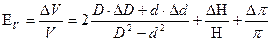 где D и d – средние значения внешнего и внутреннего диаметров соответственно, ΔD и Δd – средние значения абсолютных ошибок измерений внешнего и внутреннего диаметров соответственно, Н – среднее значение высоты цилиндра, ΔН – среднее значение абсолютных ошибок измерений высоты.