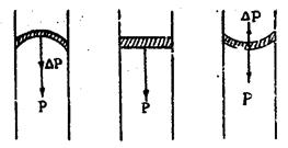 Под искривленной поверхностью жидкости, помимо внутреннего давления Р., создается еще дополнительное давление ΔР, обусловленное кривизной поверхности (рис. 3). Это добавочное давление всегда направлено к центру кривизны поверхности. Если жидкость имеет выпуклую поверхность, то добавочное давление направлено вовнутрь жидкости и общее давление в жидкости в этом случае будет больше, чем под горизонтальной поверхностью.