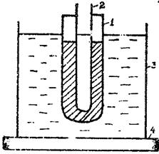 Экспериментальная установка для определения (рис.1) состоит из пробирки нафталином 1, в которую помещен термометр 2. Пробирка опускается в стакан с водой 3, который ставится на электрическую плитку 4.