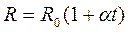 С повышением температуры металла усиливается интенсивность хаотического движения электронов и колебательного движения ионов металлической решетки, что приводит к увеличению сопротивления проводника. Зависимость сопротивления проводника от температуры выражается формулой: