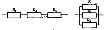 Любая реальная электрическая цепь содержит несколько сопротивлений, соединенных между собой различными способами. Наиболее простые виды соединений это последовательное (рис.2) и параллельное (рис.3):