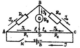 Это есть рабочая формула, по которой определяют сопротивление Rх при условии, что ток в цепи гальванометра отсутствует (Jg = 0).