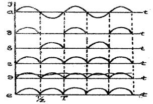 Возникающие при этом токи будут пульсирующими и иметь полупериодные перерывы (рис.3 б,в). Эти токи будут складываться, создавая общий ток