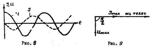 Как было изложено выше, сила тока в цепи и напряжение изменяются не в одной фазе, т. е. если сила тока изменяется по закону: