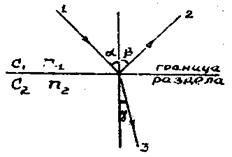 Пусть свет падает на границу раздела двух сред, скорость света одинакова в которых соответственно С1 и С2, причем С1 > С2 (рис. 1).