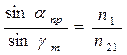 Зная, что показатели преломления двух сред обратно пропорциональны скорости распространения света в средах, закон преломления можно представить в виде: