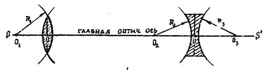 На рис.1. изображены поперечные сечения двояковыпуклой (а) и двояковогнутой (б) сферических линз (R1, R2, R3 – радиусы кривизны поверхностей линз).