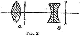Рассеивающими (вогнутыми) называются линзы, превращающие пучок параллельных лучей в пучок расходящихся лучей. У таких линз края толще середины. Схематическое изображение собирающих (а) и рассеивающих (б) линз приведено на рис. 2