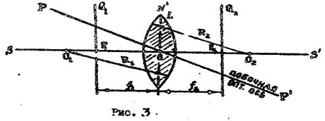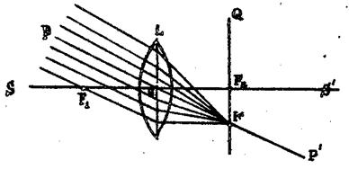 Лучи, падающие на линзу L параллельно побочной оптической оси PP΄, сходятся после преломления в точке К, лежащей в фокальной плоскости Q (рис.4).