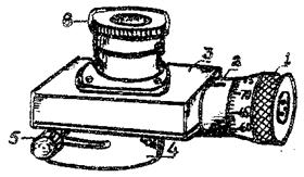 Винтовой окулярный микрометр МОВ 1-15х состоит (рис.3) из кожуха 3, основания 4 с хомутом, который надевается на тубус микроскопа вместо окуляра и закрепляется винтом 5; из окуляра 6 с диоптрийным механизмом и отсчетного приспособления, состоящего из микрометрического винта, который перемещается с помощью отсчетного барабана 1.