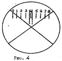 Биштрих в поле зрения расположен между делениями «3» и «4» неподвижной шкалы, а по барабану против индекса находится деление 45.