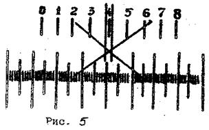 В фокальной плоскости винтового окулярного микрометра расположены неподвижная шкала с делениями от 0 до 8 мм и подвижные перекрестия и индекс (в виде биштриха) – см. рис. 4.