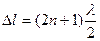 Если в разности хода лучей укладывается нечетное число полуволн: