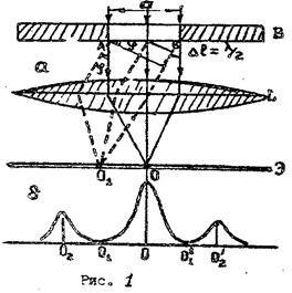 , с помощью линзы L собираются в точке О1 экрана Э, помещенного в ее фокальной плоскости, и при этом интерферируют между собой.