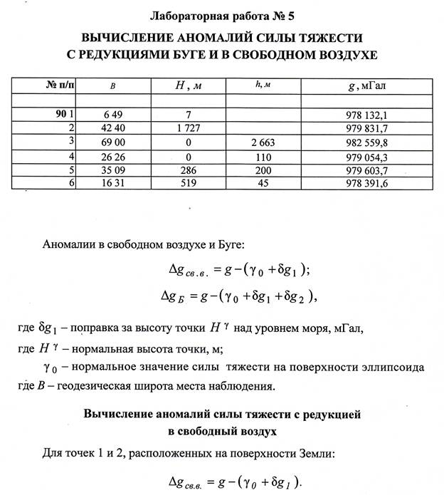 ЦЕЛЬ РАБОТЫ: освоение методики построения гравиметрических карт аномалий силы тяжести с редукциями в свободном воздухе и Буге.