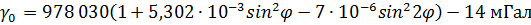 – нормальное значение силы тяжести на поверхности эллипсоида.