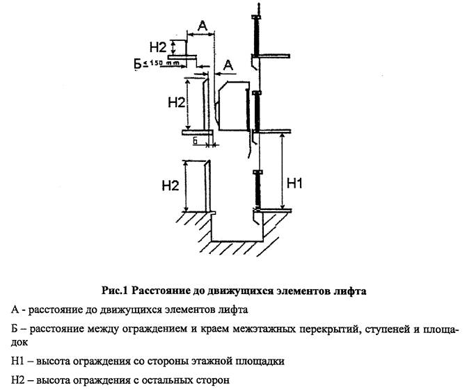 "Рисунок 1. Расстояние до движущихся элементов лифта"