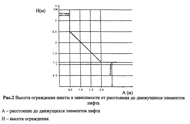 "Рисунок 2. Высота ограждения шахты в зависимости от расстояния до движущихся элементов лифта"