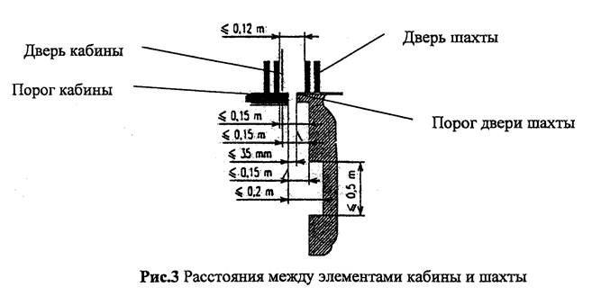 3.19.2. Горизонтальное расстояние между порогом кабины и порогом дверей шахты лифта должно быть не более 0,035 м.