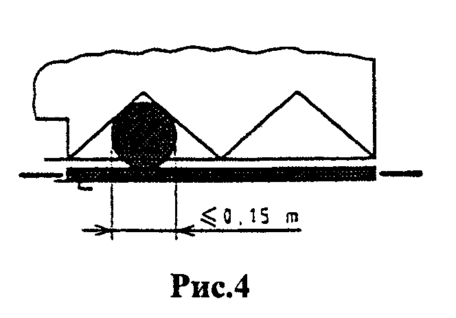 3.19.4. При сочетании распашной двери шахты и складчатой двери кабины, в любой из зазоров между этими дверьми не должен проходить шар (цилиндр) диаметром 0,15 м. Рис.4