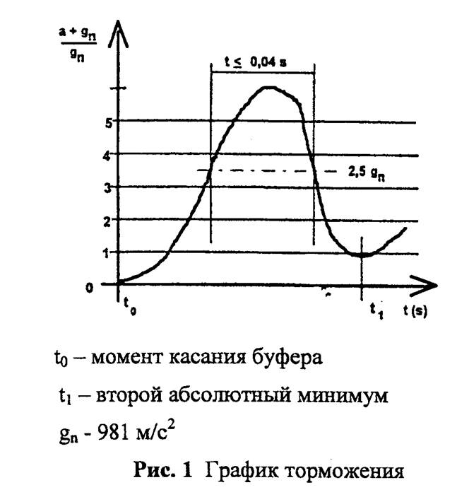 Регистрация скорости движения груза должна производиться с момента касания грузом буфера или в течение всего перемещения груза. Ускорение замедления груза должно быть рассчитано или измерено в функции времени на всем протяжении перемещения груза.