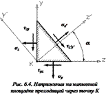 Нормальные и касательные напряжения на наклонной площадке, проходящей через точку К, определяются по формулам: