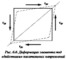 Касательные напряжения «создают» дополнительное удлинение одной из диагоналей.