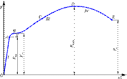 В самом начале испытания на растяжение, растягивающая сила F, а следовательно, и деформация Δl стержня равны нулю, поэтому диаграмма начинается из точки пересечения соответствующих осей (точка О).