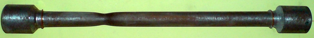 После повышения прочности материала образца, диаграмма снова "идет вверх" (участок III) и в точке D растягивающее усилие достигает максимального значения. В этот момент в рабочей части испытуемого образца появляется локальное утоньшение (рис. 2), так называемая "шейка", вызванное нарушениями структуры материала (образованием пустот, микротрещин и т.д.).