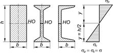 . Поэтому для таких балок целесообразными являются сечения, симметричные относительно нейтральной оси (рис. 2), так как в этом случае наиболее удаленные точки в растянутой и сжатой зонах сечения располагаются на одинаковом расстоянии y = h/2 от нейтральной оси. И, следовательно,