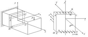 Рассмотрим поперечный изгиб (рис. 15.9, как и ранее для удобства записи индексы для напряжений σz, τzy в дальнейшем будем опускать).