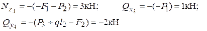 , поэтому эта часть считается «левой» при использовании формул (7.1). Правую часть рассматривать невыгодно, т.к. она более сложная и содержит в заделке «k» шесть опорных реакций (которые предварительно придется найти). Далее оси