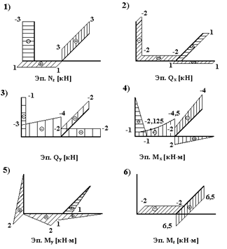 Эпюры всех внутренних силовых факторов приведены на рис. 7.3 (1÷6).