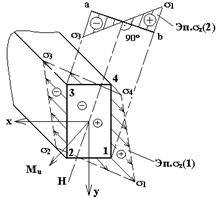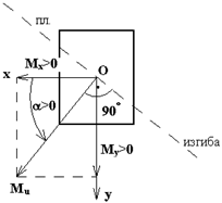в растянутой зоне, (–) в сжатой. Аналогично определяются