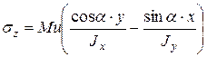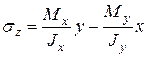Рис.7.5 | (1) Отсюда (2) Нормальное напряжение в любой точки сечения с координатами и определяется по формуле (7.2), полагая в ней (7.4) |