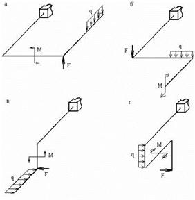 1) система располагается горизонтально, нагрузки приложены в вертикальных плоскостях (рис.1,а, б),