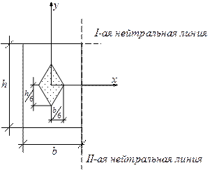 Аналогично найдем точку границы ядра сечения для случая, когда нейтральная линия проходит вертикально (II-ая нейтральная линия) Тогда получим
