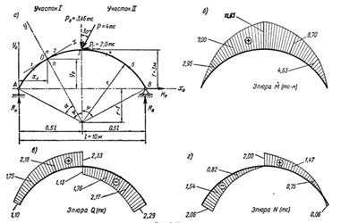 Построение эпюр внутренних усилий рассмотрим на конкретном примере плоской круговой балки (т. е. балки с осью, очерченной по дуге окружности), изображенной на рис. 3, а.