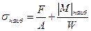 Наибольшие напряжения при поперечном изгибе с растяжением вычисляются по формуле