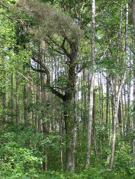 | Дубравы снытевые формируются на богатых дерново–глеевых почвах. В древостоях кроме дуба черешчатого представлены ясень, клён остролистный, берёза бородавчатая, реже пушистая, осина, изредка – липа и берест. Подлесочный ярус хорошо развит и представлен свидиной, лещиной, бересклетом европейским и бородавчатым, крушиной, ежевикой. В напочвенном покрове кроме сныти обыкновенной, являющейся основным индикатором в этом типе леса, повсеместно встречаются зеленчук жёлтый, крапива двудомная, живучка ползучая, будра плющевидная, буквица, ландыш майский, чина лесная, ясменник пахучий, медуница неясная, | |