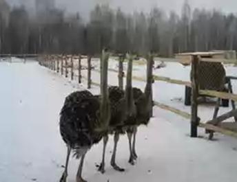 На ферме разводят самую большую птицу в мире – черного африканского страуса. Его рост достигает 2,5 м, а вес 150 кг. Живет страус 70 лет, из них 35–40 лет несет яйца. И хотя белорусский климат сильно отличается от родного африканского, страусы прекрасно адаптировались к здешним климатическим условиям и хорошо переносят наши зимы. В отличие от других домашних животных страусы практически не подвержены заболеваниям: им не страшны ни птичий грипп, ни коровье бешенство. Мясо и яйца страусов по медицинским показателям значительно превосходят аналоги. Содержание холестерина в них минимальное. Мясо практически не содержит жира, тем не менее, на вкус оно сочное и мягкое. Из скорлупы страусиных яиц делают настоящие произведения искусства. Кожа страуса высоко ценится и по прочности не уступает слоновьей. Из нее шьют обувь и галантерейные товары. Высоко ценится и страусиный жир. Он широко используется в косметике и медицине. Когти страуса используются при обработке алмазов, а из ресниц делают высококачественные художественные кисти. Хотя мода на страусиные перья для украшения женских шляпок давно прошла, тем не менее, они также пользуются огромным спросом.