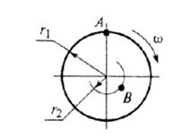 | Вопрос 28: Известно, что скорость точки А равна 12 м/с. Определить скорость точки В, если r2=0,2r1 |