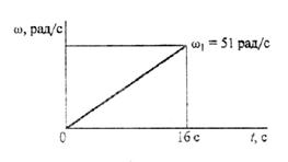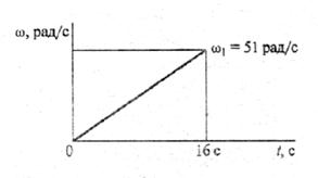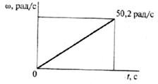 | Вопрос 47: Скорость ротора менялась согласно графику и за 120 оборотов достигла 50,2 рад/с. Определить время разгона до указанной скорости |