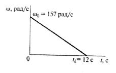 | Вопрос 36: При торможении ротора электродвигателя его скорость меняется согласно графику. Рассчитать число оборотов ротора до полной остановки |