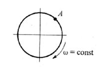 | Вопрос 37: Какие ускорения возникнут в точке А при равномерном вращении колеса? |