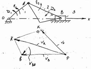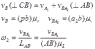 - относительная скорость точки В при вращении звена “2” вокруг точки “A”.