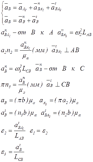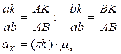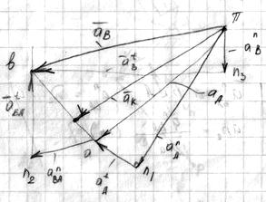 Точку “k” находим по свойству подобия, которое справедливо и для плана ускорений. Для этого методом засечек строим треугольник